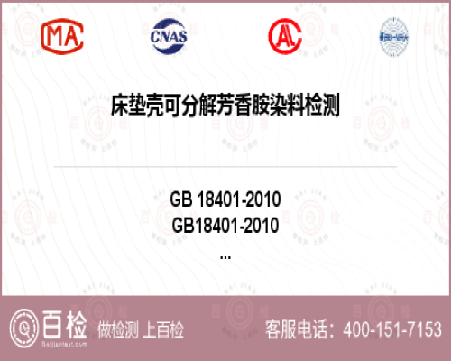 7、國家紡織產品基本安全技術規(guī)范 GB 18401-2010 5.1.7---羽絨羽毛床墊可分解芳香胺染料項目檢測